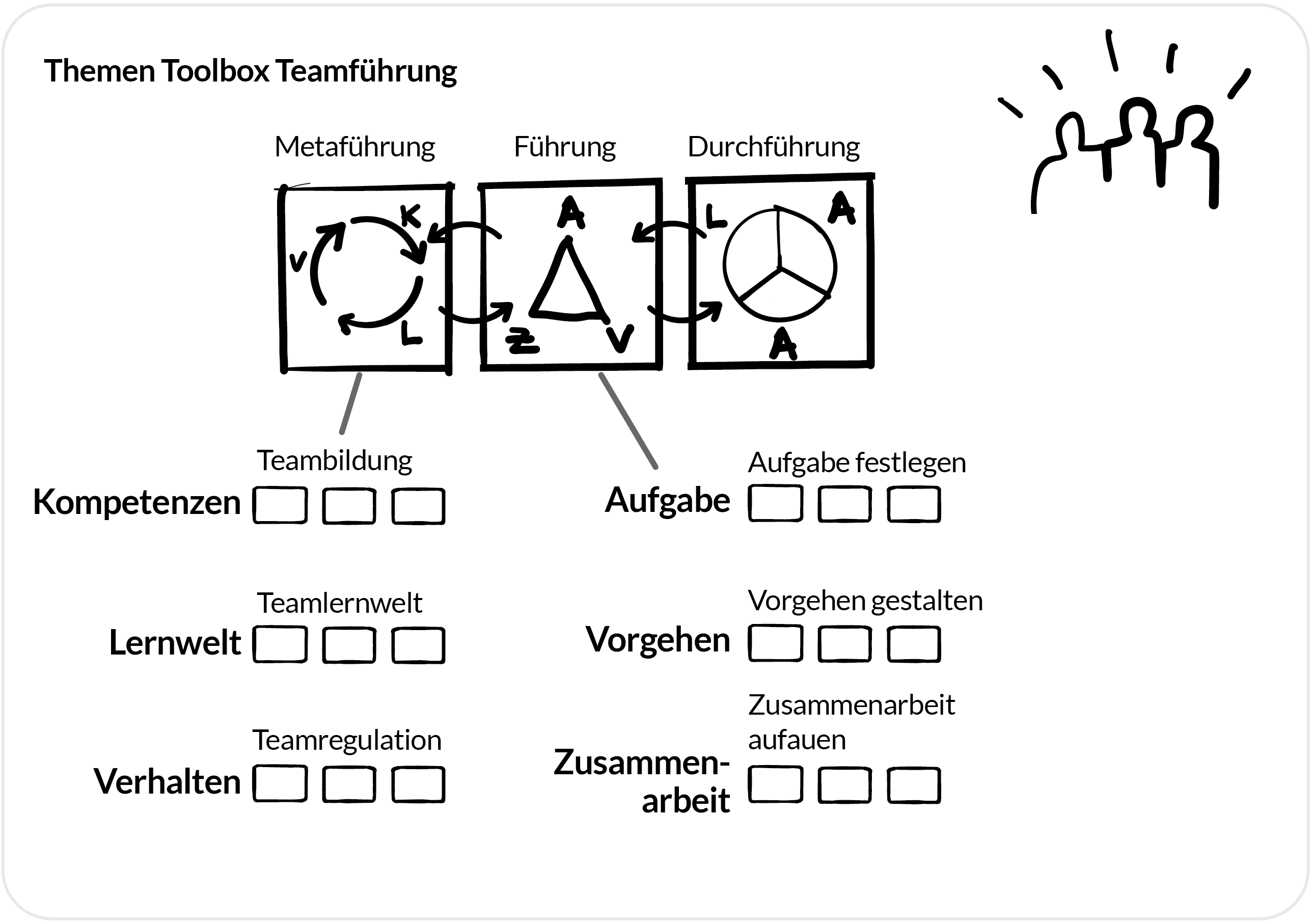Wir unterscheiden folgende Hauptthemen der Teamführung: